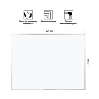 Доска магнитно-маркерная OfficeSpace в размере 90*120 см – отличное приобретение для офиса или школы. Вес нетто составляет 5 кг. Лакированная поверхность белого цвета подходит для письма сухостираемыми маркерами. Можно прикреплять информацию с помощью магнитов или немагнитной поверхности (меламин). В комплект входит полка для маркеров 30 см. Рамка изготовлена из анодированного алюминия с пластмассовыми уголками. Односторонняя доска представлена со скрытым креплением к стене в четырех углах, крепежные элементы прилагаются.