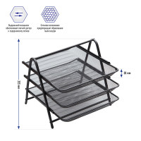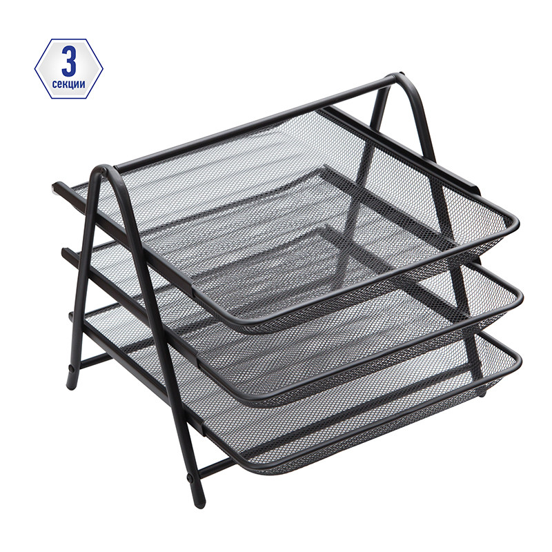 Стильный и практичный горизонтальный лоток с 3 секциями из высококачественного материала. Предназначен для удобного хранения бумажной продукции формата А4. Позволяет легко и эффективно организовать рабочее место. Лотки могут использоваться отдельно от опоры. Выдвижной механизм обеспечивает легкий доступ к содержимому лотков. Легкая и быстрая сборка. Черный цвет. Прочный корпус из высококачественного металла. Сетчатое исполнение предотвращает образование пыли внутри.