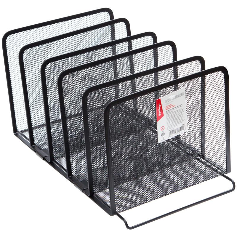 Подставка для сортировки писем и бумаг Berlingo Steel&Style с 5 секциями идеально подойдёт для повседневного использования – легко упорядочить письма, документы, папки или планшеты, не создавая беспорядка на рабочем столе. Прочный чёрный корпус выполнен из высококачественного металла, а сетчатое исполнение предотвращает образование пыли внутри. Идеально сочетается с другими товарами серии Steel&Style.