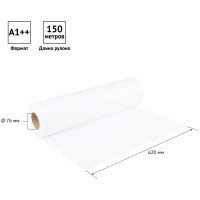 Размер бумажного полотна составляет 620 мм, что соответствует формату А1++. Длина рулона - 150 м. Внутренний диаметр втулки - 76 мм.