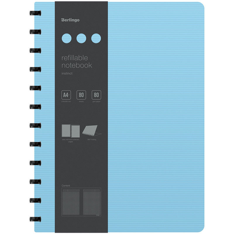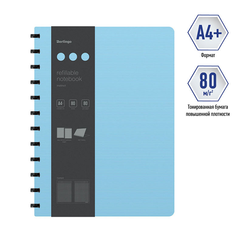 Бизнес-тетрадь Berlingo "Instinct" - это практичное, стильное и современное изделие для планирования и записей. Такая бизнес-тетрадь является незаменимым инструментом для деловых людей. Увеличенная толщина обложки (1500мкм). Формат А4+. Насыщенный пастельный голубой цвет внешней стороны в сочетании с фактурой "горизонтальные линии". Черный цвет внутренней поверхности. Материал обложки - трехслойный пластик (полифом), надежно защищает внутренний блок от влаги, замятия и загрязнения, обложка устойчива к загрязнениям. Вид скрепления – стильные имиджевые черные кольца, с возможностью раскрывать тетрадь на 360⁰. Возможна замена бумажного блока и быстрая и удобная выемка/вставка листов без повреждений. Бизнес-тетрадь содержит съемную брендированную линейку, которую можно использовать как закладку или разделитель и с легкостью можно перемещать в удобное место. Внутренний блок – высококачественная тонированная бумага, плотностью 80г/м2, 80 листов в клетку, рамка для заголовка, темы или даты, поля с обеих сторон блока на каждом листе, линовка на вылет. Размер бизнес-тетради 305*225мм, диаметр колец 22мм. Упаковка в термоусадочную пленку позволяет предохранить листы от замятия и загрязнения в процессе транспортировки.