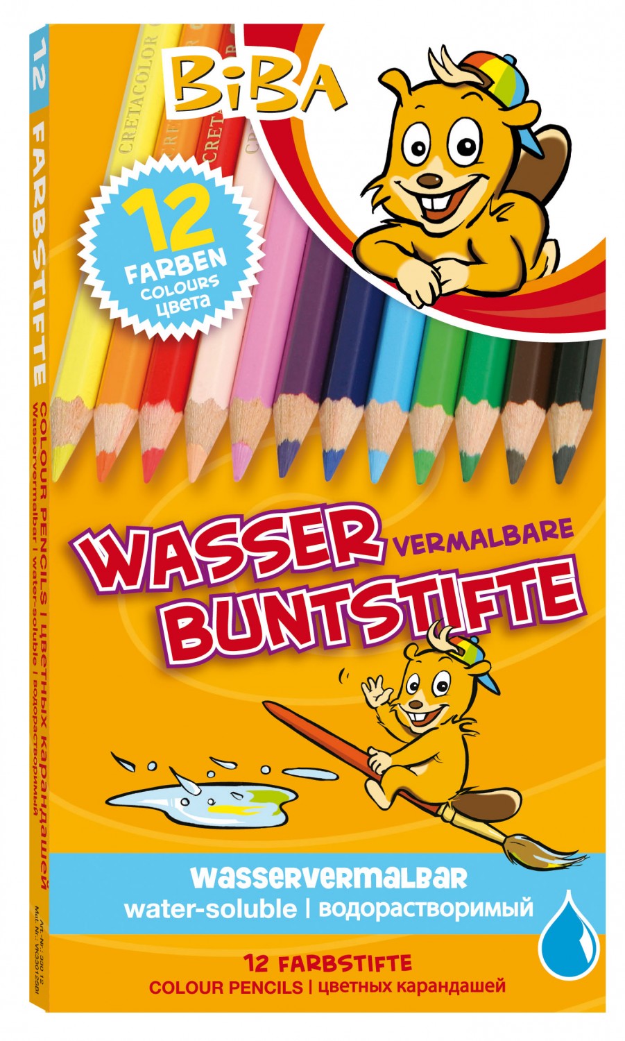 Акварельные карандаши BIBA с толстым стержнем, 12 цветов