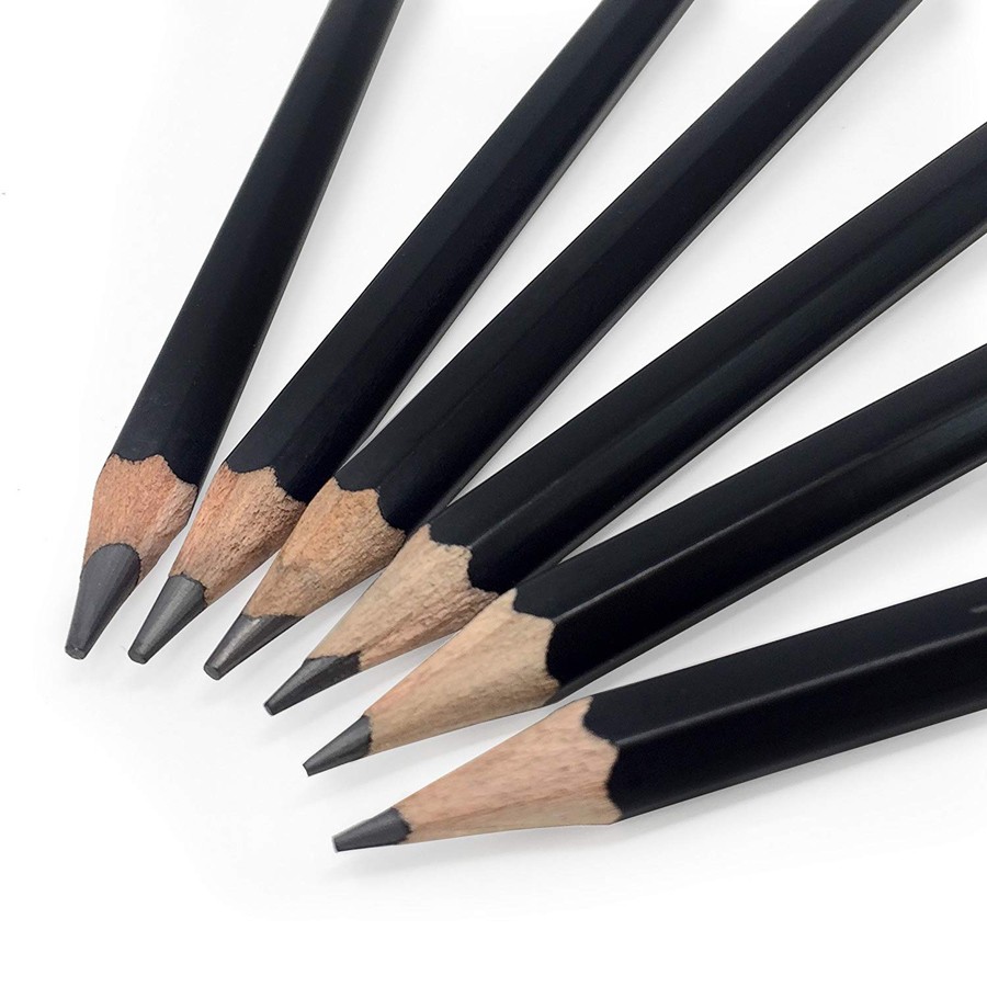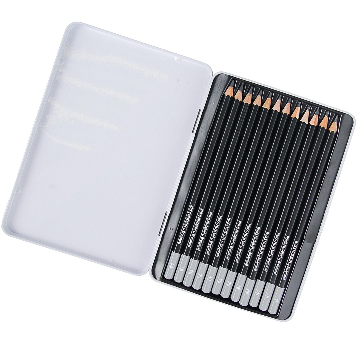 В набор входят карандаши следующих 6 типов твердости: 2H, 1H, HB, 1B, 2B, 3B, 4B, 5B, 6B, 7B, 8B, 9B.