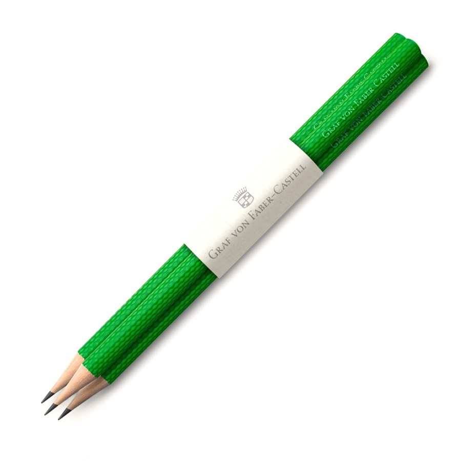Набор из 3 карандашей "Guilloche Viper Green" немецкой марки "Graf von Faber-Castell", цвет корпуса - зеленый. Элегантные чернографитовые деревянные карандаши, покрытые цветным многослойным лаком, на котором вручную выточен узор в технике "гильош" ("guilloche"), используемой ювелирами при обработке драгоценных металлов. Легко затачиваются. Высококачественный грифель (твердость В) доставит удовольствие во время письма или рисования.