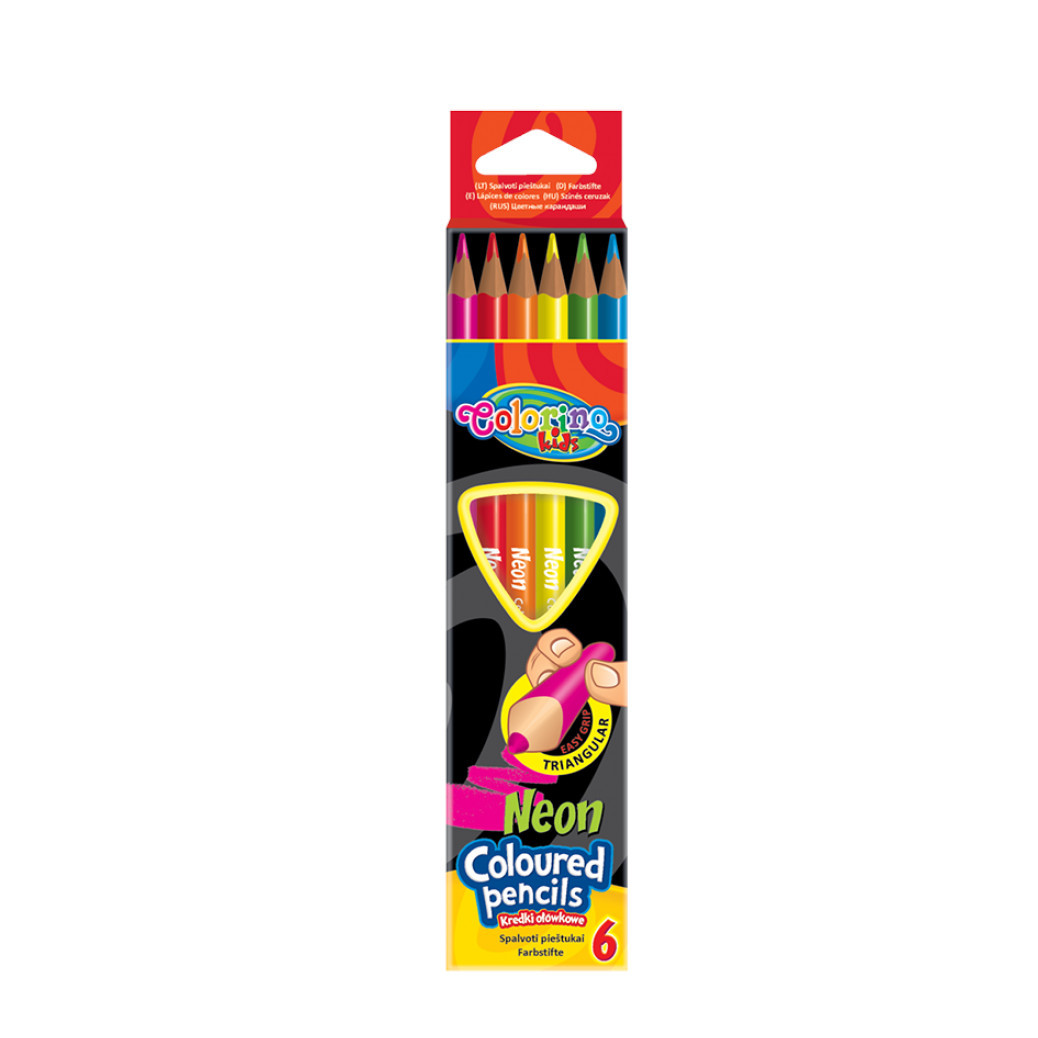 Цветные карандаши для творчества и хобби. Отлично подойдут детям и любителям рисования. В наборе 6 неоновых цветов. Благодаря треугольной форме, карандаши отлично лежат в руке, мягкая древесина, из которой выполнен корпус, обеспечивает лёгкость затачивания, а оптимальный состав грифеля гарантирует яркость и насыщенность цвета и мягкое рисование на бумаге любого типа.