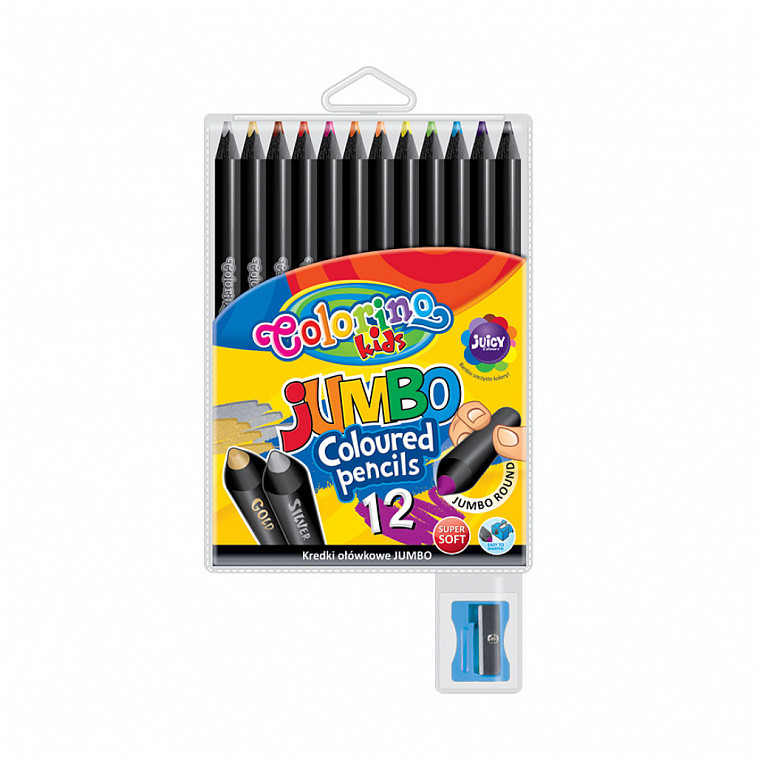 Набор карандашей цветных круглых Colorino JUMBO 12 цветов ( с точилкой ) черное дерево