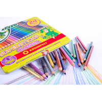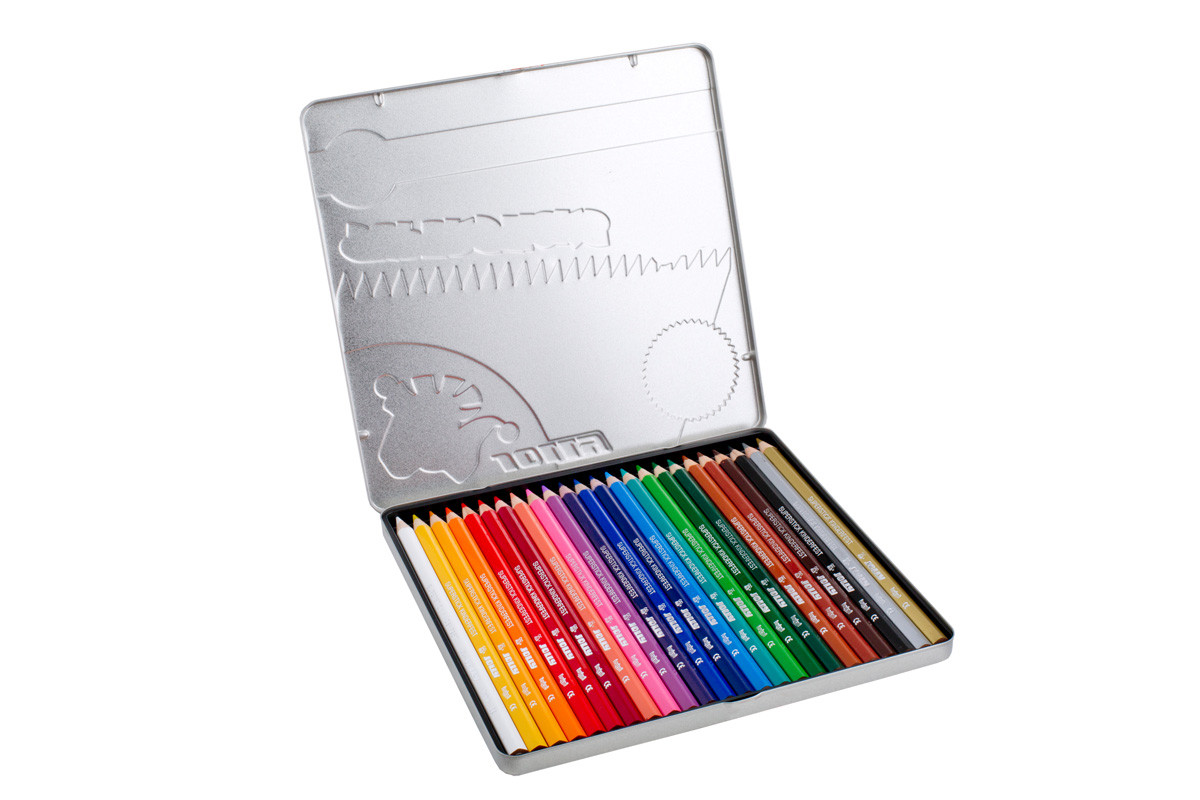 Яркие и насыщенные цвета. Усиленный деревянный корпус. В наборе: 24 цвета. Металлическая коробка