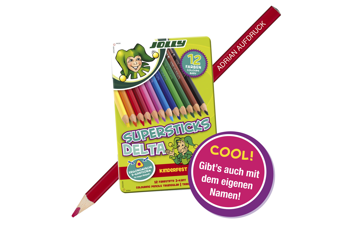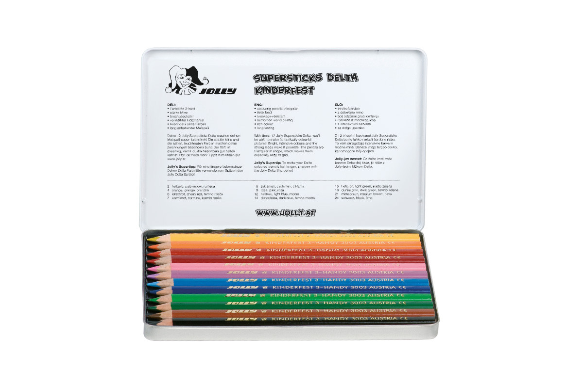 Карандаши цветные треугольные JOLLY Supersticks DELTA 12 цветов в металлической коробке