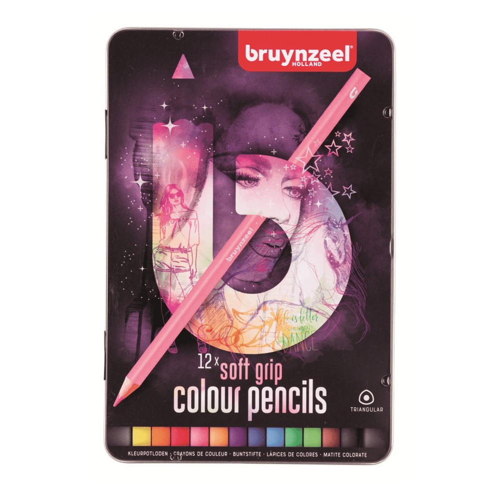 Набор цветных трехгранных карандашей "Soft Grip" в металлической коробке из коллекции для подростков "Teens" ("Back to School") от "Bruynzeel" (Нидерланды) состоит из 12 ярких насыщенных цветов. Корпус карандашей - деревянный, трёхгранный, особой удобной формы, с приятной на ощупь поверхностью. Благодаря двойной проклейке корпуса, карандаши устойчивы к излому и легко затачиваются. В грифелях диаметром 2,9мм - высокое содержание пигмента. Это позволяет смешивать цвета без ущерба для яркости работы. Карандаши упакованы в стильную надежную металлическую коробку черно-розового цвета. Размер коробки: 18,8х12,5х1,6см.