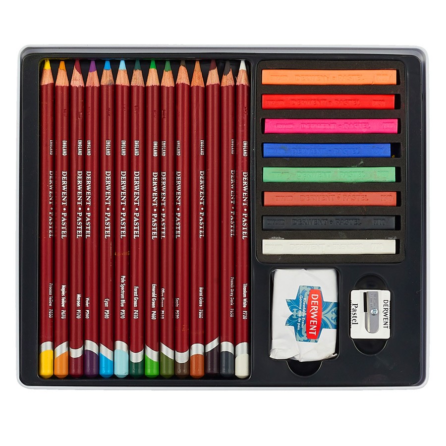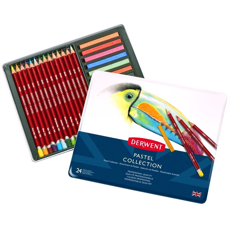 Набор Derwent Pastel Collection 24 предмета в металлической коробке включает в себя: