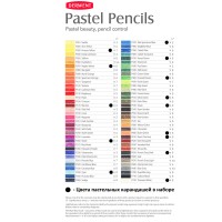 14 пастельных карандашей Derwent Pastel, цвета: желтый (Process Yellow), желтый неаполитанский (Naples Yellow), бордовый темный (Maroon), фиолетовый (Violet), голубой (Cyan), синий спектральный бледный (Pale Spectrum Blue), зеленый лес (Forest Green), зеленый изумрудный (Emerald Green), зеленый оливковый (Olive Green), сепия (Sepia), охра жженая (Burnt Ochre), кармин жженый (Burnt Carmine), серый французский темный (French Grey Dark), белила титановые(Titanium White);