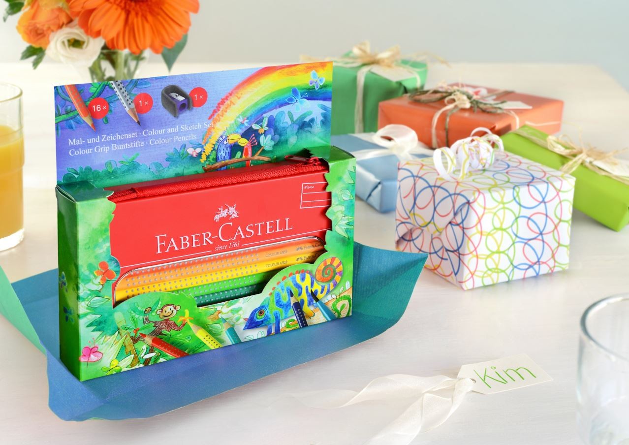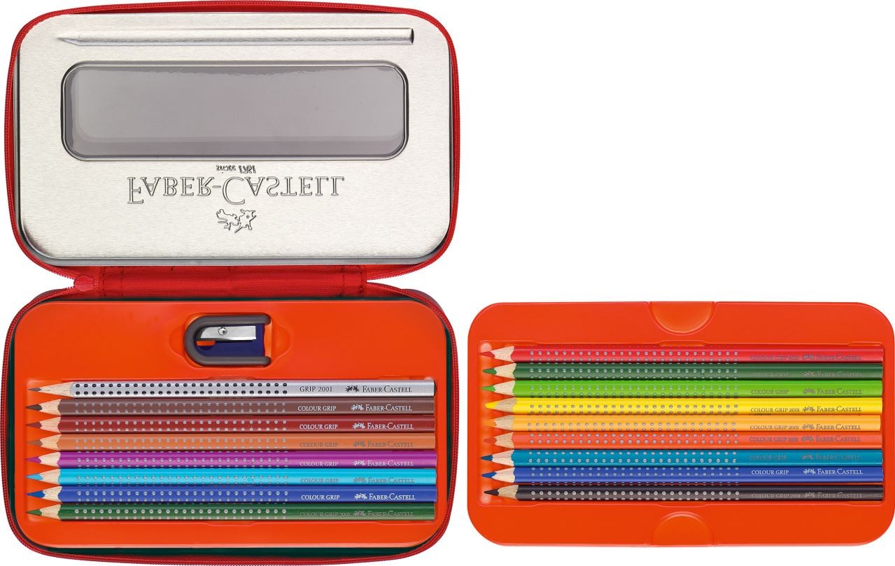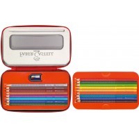 Эргономичный пенал на молнии содержит 16 цветных карандашей Grip, графитовый карандаш и точилку