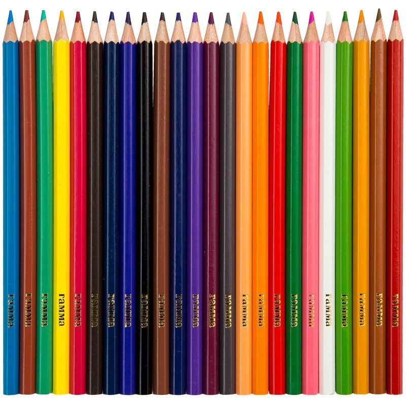 Цветные карандаши "Классические" от фирмы Гамма отлично подойдут для школьников и начинающих художников. Высококачественные пигменты обеспечивают яркость и мягкость письма. Шестигранный корпус карандашей выполнен из натурального дерева. Специальная обработка дерева обеспечивает легкую заточку. Карандаш комфортно держать в руке. Прочный неломающийся грифель не требует сильного нажатия. В набор входят 24 карандаша следующих цветов: ярко-розовый, красный, темно-фиолетовый, голубой, светло-голубой, зеленый, салатовый, желтый, персиковый, оранжевый, коричневый, черный, фиолетовый, жженая охра, белый, малиновый, ярко-синий, ярко-желтый, изумрудный, темно-красный, бордовый, серый, ярко-коричневый, терракотовый.