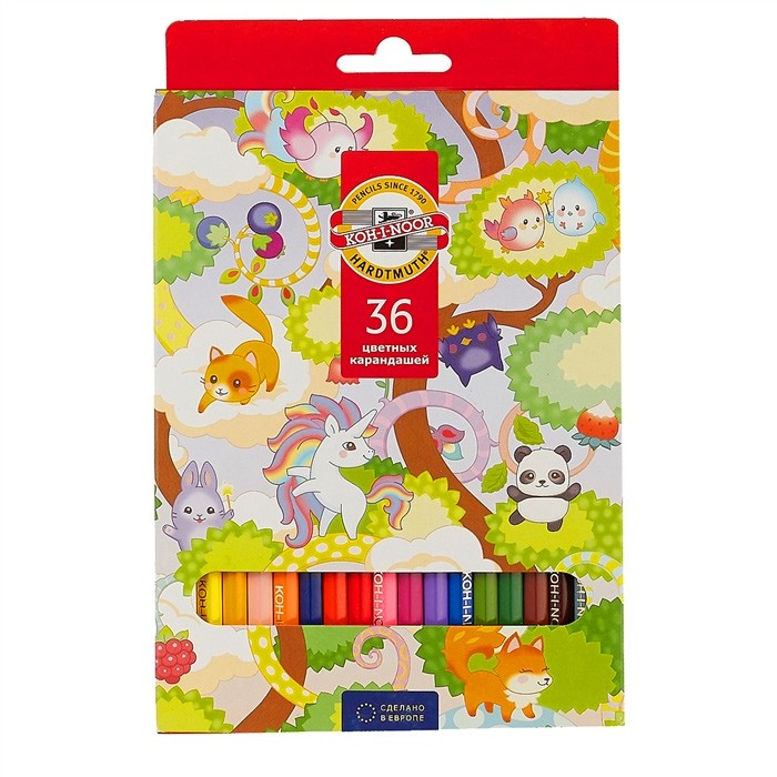 Набор из 36 цветных заточенных карандашей от чешской компании "Koh-I-Noor". Карандаши изготовлены из экологически чистых материалов высшего качества. Поставляются в компактной красочной упаковке. Карандаши отлично подойдут для школьников и не только. Корпус - деревянный, шестигранный, цветной (лакированный), легко затачивается. Грифель - повышенной прочности, 2.8 мм. Длина каждого карандаша - 175мм, толщина - 7мм. Упаковка - картонная коробка c подвесом.
