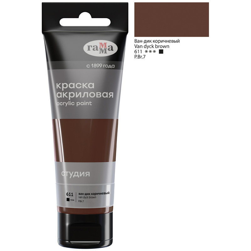Краска худож. акрил Гамма `Студия`, туба 75мл, 611 Ван-дик коричневый
