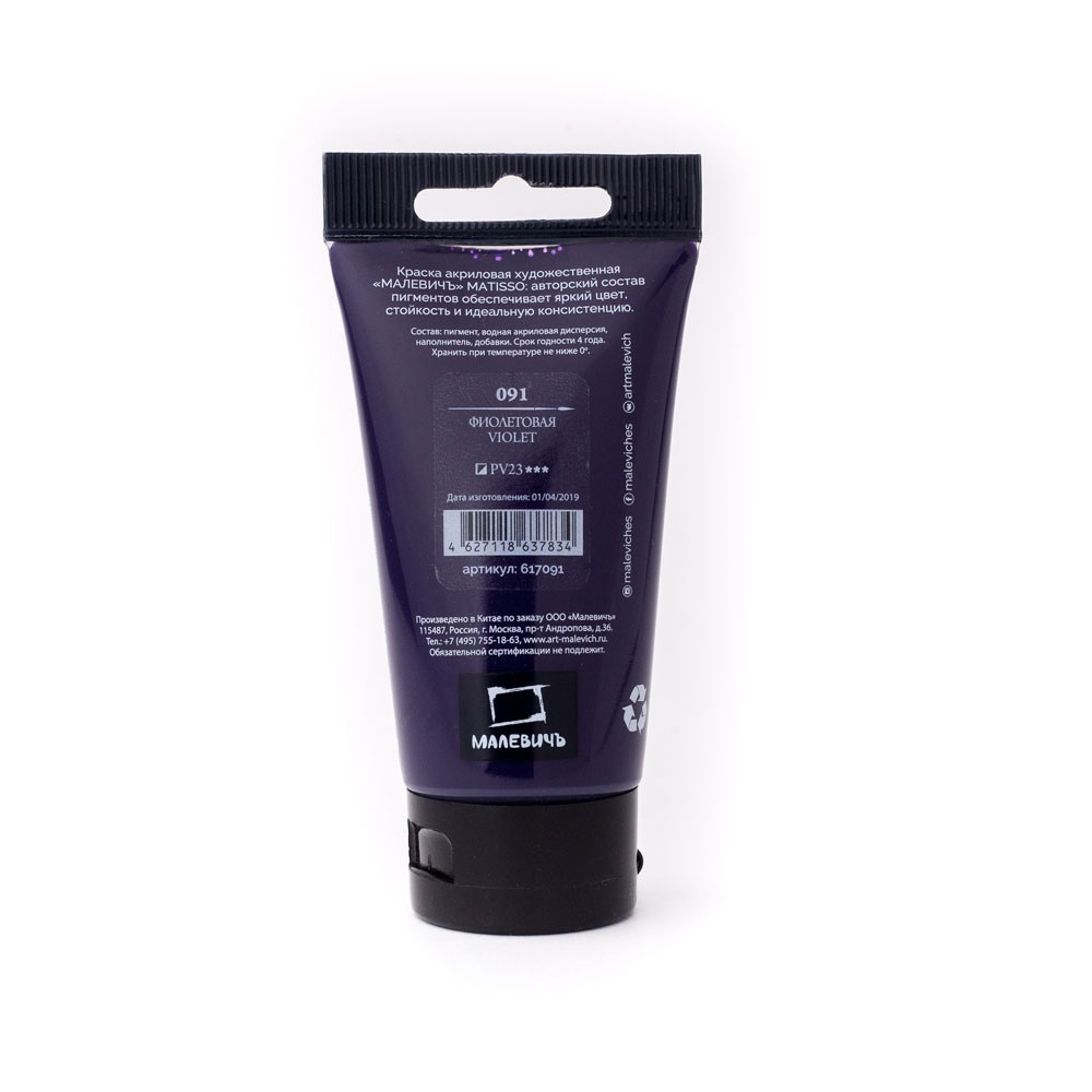 Краска акрил Matisso МАЛЕВИЧЪ, туба 60мл, 091 фиолетовый