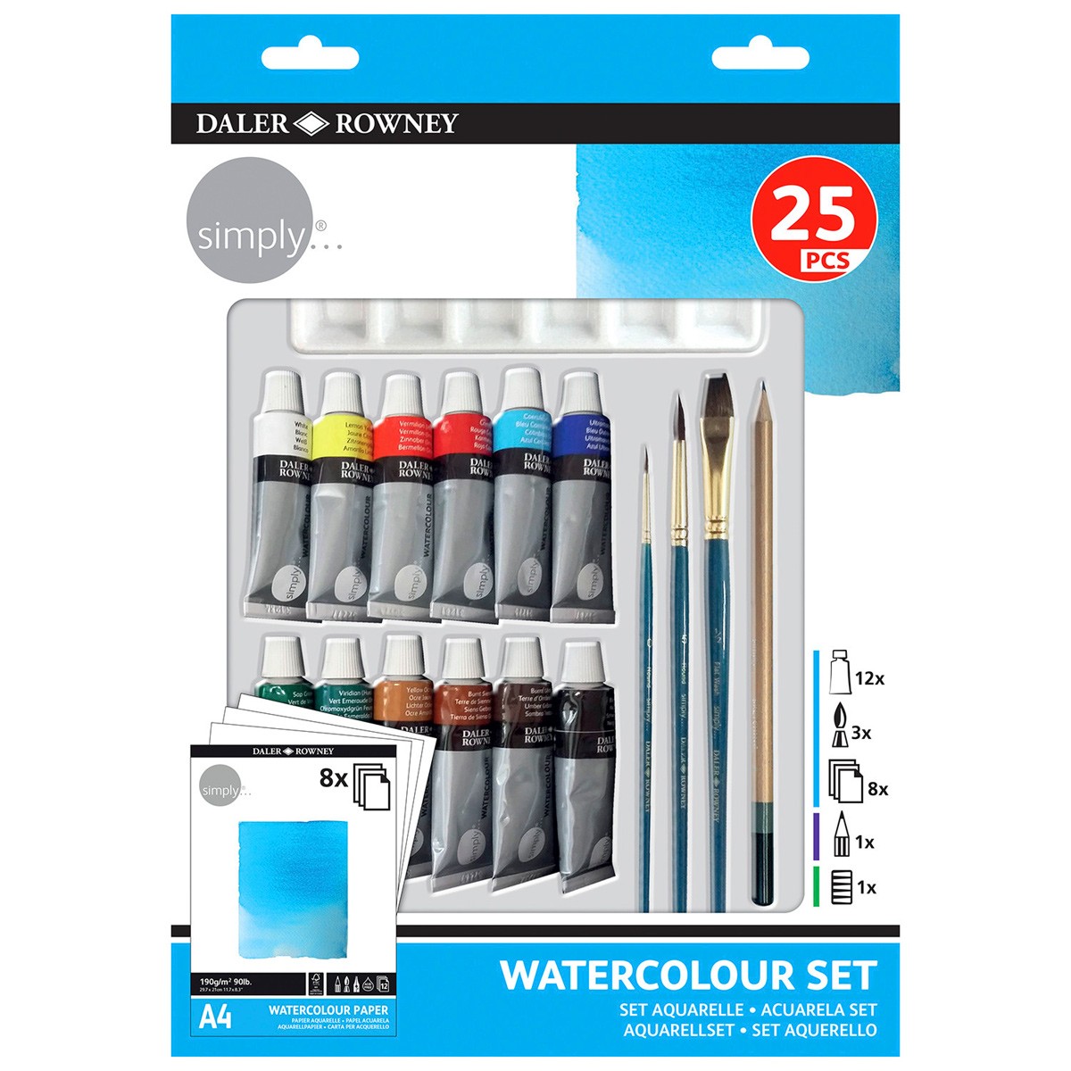 Акварельные краски из коллекции "Simply" от английской фирмы "Daler-Rowney" - совершенная "отправная точка" для начинающих художников, а также для профессионалов, желающих поэкспериментировать с акварельными техниками. Эти доступные качественные краски можно использовать для художественных работ на всех традиционных поверхностях, предназначенных для "мокрых техник", таких как бумага, картон, холст, и т.п. Краски легко смешиваются, ими можно делать красивые деликатные заливки и прорисовывать четкие мелкие детали. Довольно большая цветовая гамма, состоящая из ярких классических оттенков, позволит воплотить любой замысел. Кроме того акварель "Simply" отличается замечательным соотношением цена-качество.