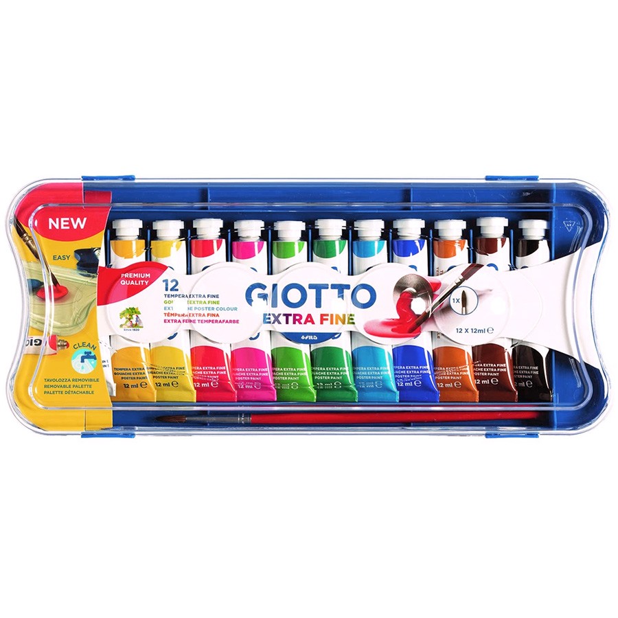 Гуашь "экстра-файн" GIOTTO это - качественные тонкотертые краски на водной основе. Обладают высокой укрывистостью. Готовы к использованию без разбавления водой. Яркие чистые оттенки можно смешивать для получения новых оттенков. Подходит для рисования по бумаге, дереву, картону. Набор упакован в пластиковый кейс с плотно закрывающейся крышкой.