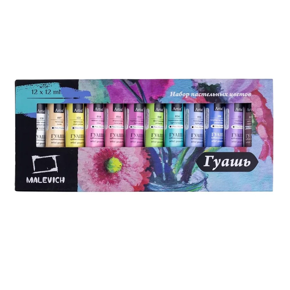 Набор гуаши от компании "Малевичъ" это - прекрасный подарок и начинающему, и опытному художнику. Небольшой объем тюбиков удобен для выездов на этюды. Краски упакованы в красивую коробку.