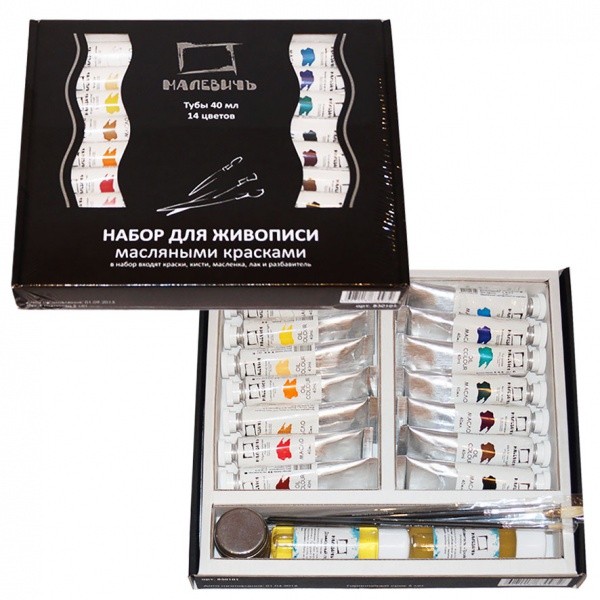 Набор "Классик-14" в картонной упаковке от компании "Малевичъ" включает в себя всё, что нужно профессиональному живописцу: