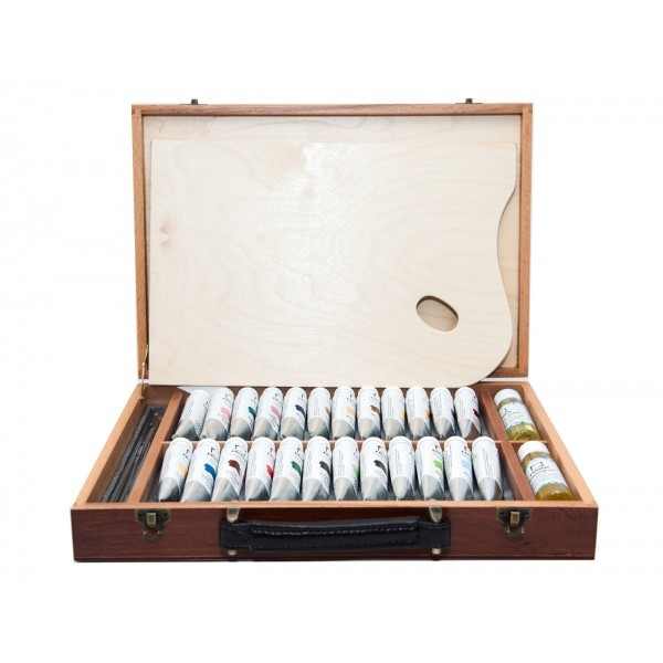 Набор с масляными красками "Oil Premium 24" от компании "Малевичъ" это - полный комплект для масляной живописи в элегантном кейсе из натурального бука. Набор разработан профессиональными художниками, включившими в его состав все, что только может потребоваться мастеру: