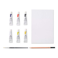 в набор входит 6 масляных красок х10мл, кисточка №10 щетина.