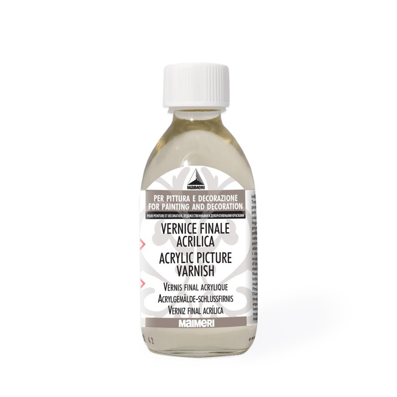 Покрывной акриловый лак с УФ-фильтром №667 от итальянской компании "Maimeri" является универсальным средством защиты готовых работ от воздействий внешней среды и от ультрафиолетового излучения. Бесцветен, не желтеет. Состоит из раствора акриловой смолы (30%) в уайт-спирите. Образует прочную эластичную водонепроницаемую пленку. Незаменим для защиты произведений, находящихся на открытом воздухе. Подходит для акриловой и масляной живописи, для акварели и гуаши. Наносить лак необходимо только после полного высыхания работы. Легковоспламеняющийся. Работать следует в проветриваемом помещении.