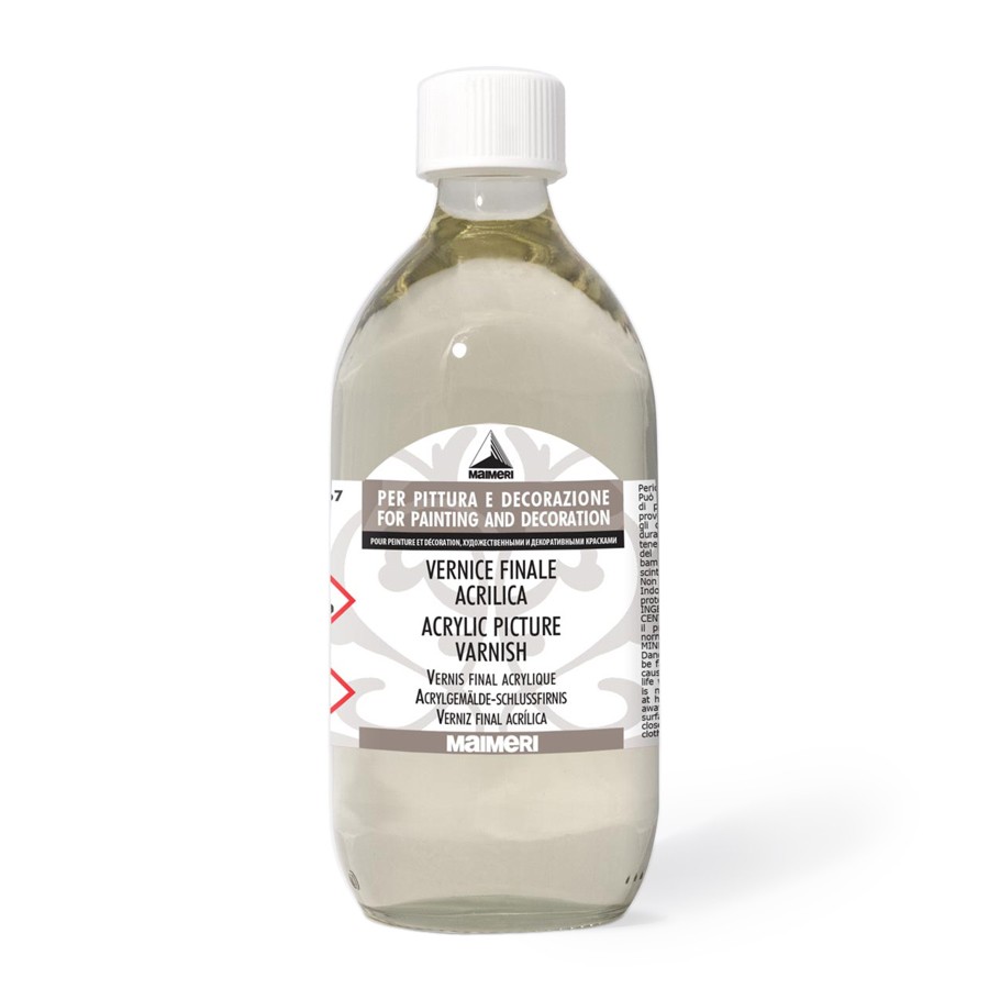 Покрывной акриловый лак с УФ-фильтром №667 от итальянской компании "Maimeri" является универсальным средством защиты готовых работ от воздействий внешней среды и от ультрафиолетового излучения. Бесцветен, не желтеет. Состоит из раствора акриловой смолы (30%) в уайт-спирите. Образует прочную эластичную водонепроницаемую пленку. Незаменим для защиты произведений, находящихся на открытом воздухе. Подходит для акриловой и масляной живописи, для акварели и гуаши. Наносить лак необходимо только после полного высыхания работы. Легковоспламеняющийся. Работать следует в проветриваемом помещении.