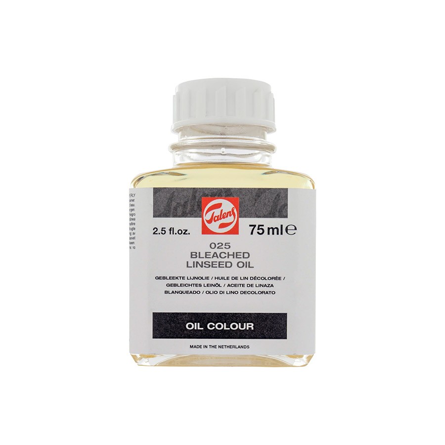 Масло льняное отбеленное Royal Talens (025) используется, чтобы увеличить прочность и эластичность пленки, образующейся при высыхании красочного слоя. Также может быть использовано как связующее при самостоятельном изготовлении красок. Состав: отбеленное льняное масло. Значительно увеличивает время высыхания красок и блеск красок. Увеличивает риск сморщивания красочного слоя. Незначительно желтеет, при дневном свете пожелтение исчезает. Излишки масла можно убрать уайт-спиритом или терпентином.