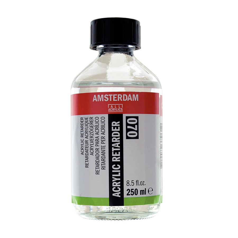 Замедлитель высыхания Talens Amsterdam для акрила (070) от Royal Talens имеет в составе медленно испаряющийся многоатомный спирт. Увеличивает время высыхания акриловой краски не более чем на 20%. Полностью испаряется из красочного слоя. Использовать очень экономно (не более 5% в смеси с краской). Можно разбавлять водой.