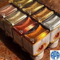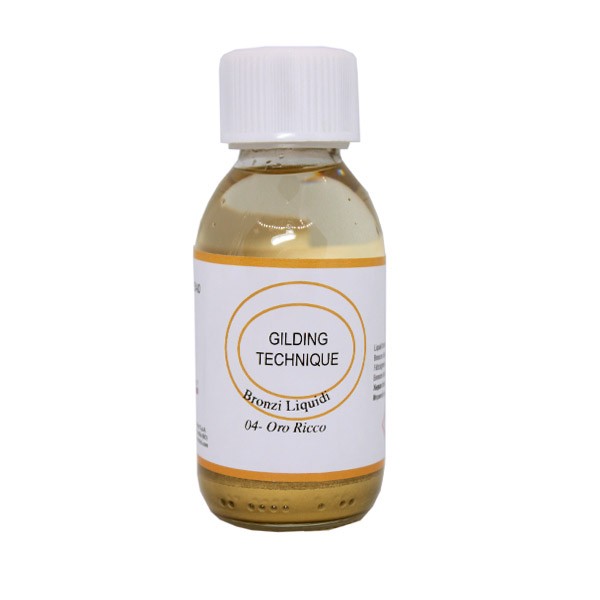 Бронза (поталь) жидкая AZIENDA (Ferrario) может использоваться как самостоятельный материал, или для реставрации позолоты. Пигмент состоит из металлических чешуек. Наносить жидкую бронзу необходимо на выровненную поверхность. Можно предварительно нанести грунт. Перед применением необходимо тщательно взболтать содержимое бутылочки в течение 3-5 минут. Время высыхания - около 7 часов. После золочения предполагается нанесение слоя защитного лака.