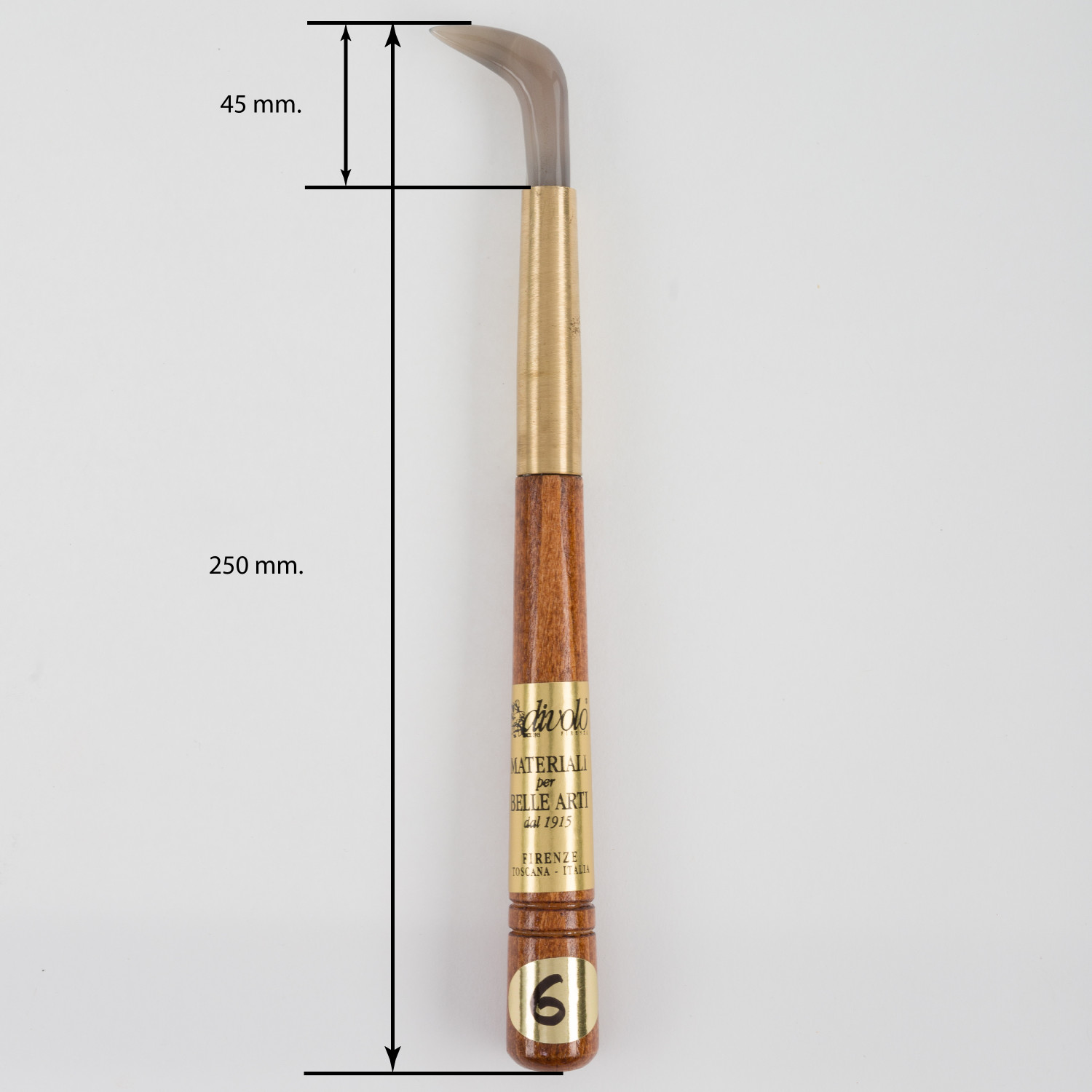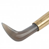 Профессиональный полировочный инструмент из природного материала (агат - полудрагоценный камень различной окраски). Безупречно отшлифованный агатовый зуб, большое разнообразие форм, добротная ручка-обеспечивают высококачественное и удобное использование инструмента в техниках золочения. Агатовые зубки необходимы в завершающем этапе полиментного золочения. Используются для полировки сусального золота, твореного золота и др. материалов на поверхностях, содержащих мельчайшие выемки, разнообразные углубления, замысловатую лепку. Форму зубка подбирают в зависимости от формы деталей декорируемой поверхности. Благодаря полировке агатовыми зубками вызолоченная поверхность приобретает необходимый блеск. Для этого агат должен быть очень гладким. Камень легко царапается и должен храниться в безопасном месте.