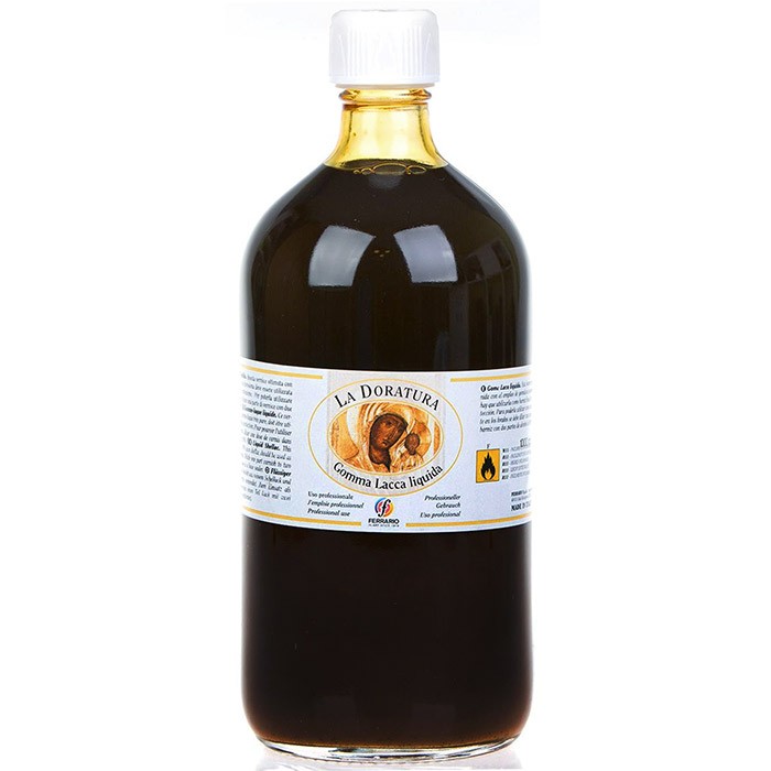 Шеллак жидкий - это быстросохнущий покрывной шеллачный лак, изготовленный на основе природных смол. В основном используется при золочении и реставрационных работах. Шеллак прекрасно подходит для покрытия различных работ и превосходно ложится на любые поверхности. Наносится мягкой плоской кистью или губкой. Неочищенный жидкий шеллак имеет более густую консистенцию, и придаёт работе красноватый оттенок. Он может служить пропиткой для подготовки основы под позолоту. Очищенный жидкий шеллак, по сравнению с неочищенным, придает работе более светлый янтарный оттенок. Может применяться в качестве защитного покрытия.