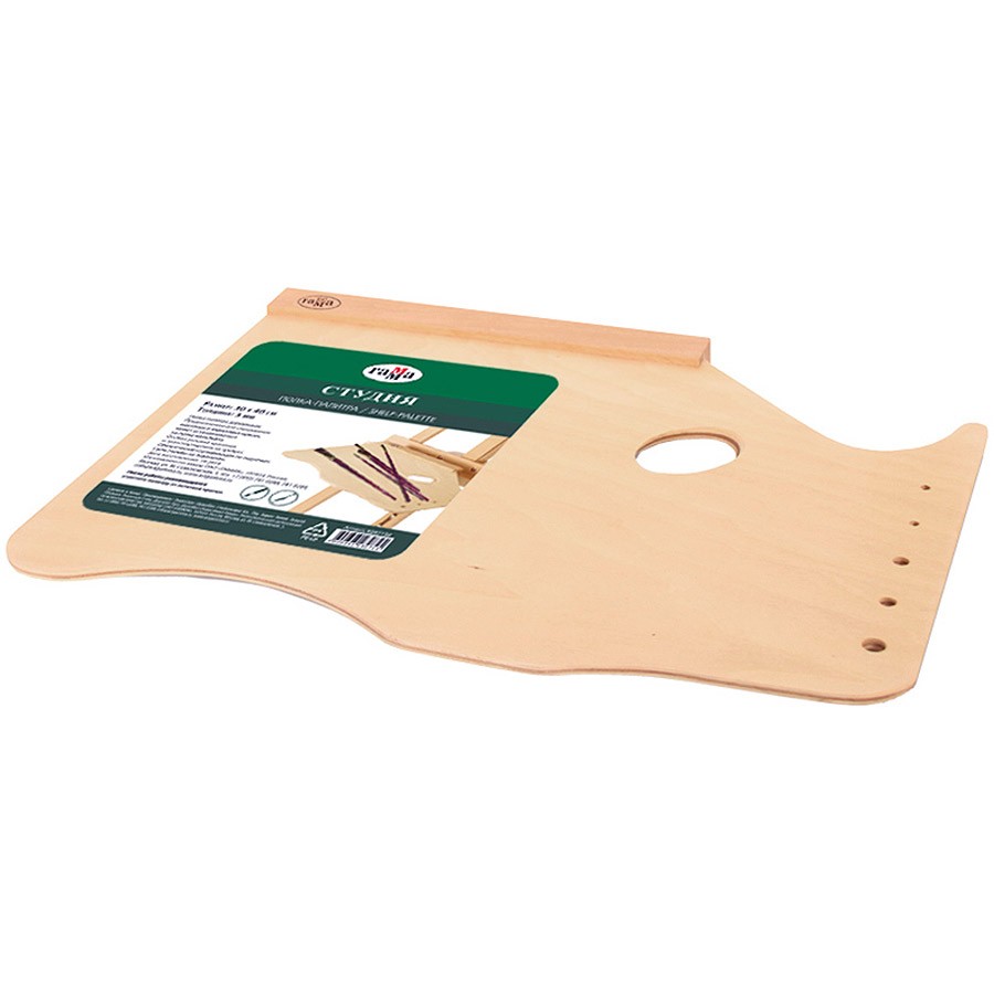 Полка-палитра ГАММА "Студия" – удобный аксессуар для живописи. Размер полки-палитры – 30х40 см, толщина составляет 5 мм. Полку-палитру легко установить на бортик пюпитра любого студийного мольберта ГАММА типа Лира или Станок. Её удобно держать в руке благодаря эргономичному отверстию для большого пальца. Оснащена держателями для кистей. Полка-палитра изготовлена из бука и фанеры.