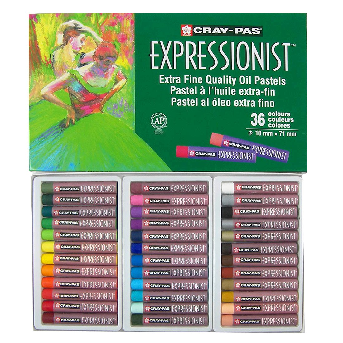 Наборы масляной пастели "Expressionist" из серии "Cray-Pas" от японской фирмы "Sakura" это - оптимальный выбор для начинающих художников, студентов и школьников. Серия "Cray-Pas" выпускается с 1925 года. За эти годы был тщательно выверен состав, размеры мелков, цветовая палитра и сочетание цветов в наборах. Масляная пастель "Cray-Pas" совершенно безопасна. В ее составе - высокое содержание пигментов. Она достаточно прочная, чтобы не крошиться, и достаточно мягкая, чтобы гладко и пластично ложиться на различные поверхности и давать возможность смешивать цвета. Масляная пастель "Cray-Pas" подходит для бумаги, картона, холста и дерева. Широкий цветовой спектр позволяет применять ее для портретов, пейзажей и натюрмортов, фантазийных и оформительских проектов, в различных видах хобби.