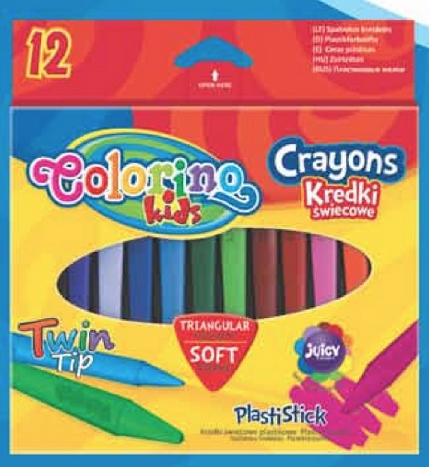 Набор состоит из 12 восковых мелков. Мелки обладают мягкой текстурой, позволяя рисовать практически без нажима. Яркие укрывистые цвета отлично ложатся на бумагу, картон, дерево и другие поверхности. Несмотря на мягкость, мелки достаточно прочные, не токсичны и абсолютно безопасны для детского творчества.