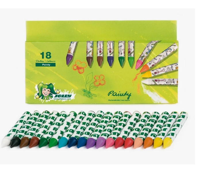 Мелки восковые JOLLY Painty завернутые в бумагу, 18 цветов в картонной коробке