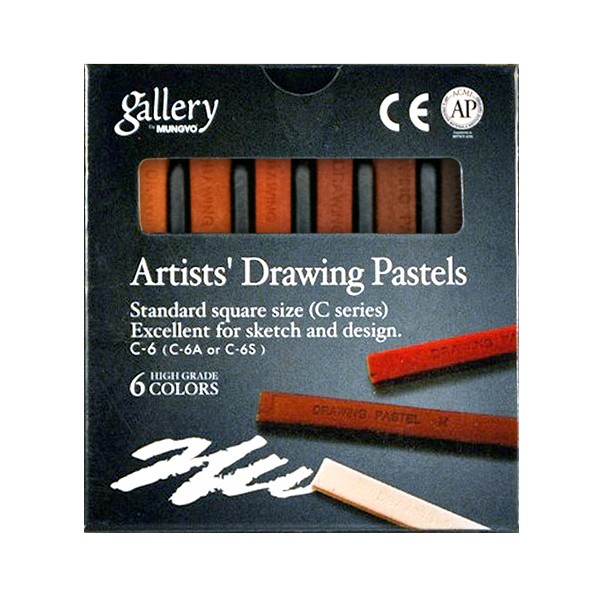 В набор входят 6 пастельных мелков "Artists' Drawing Pasteles" серии GALLERY от компании "Mungyo" (Корея). Это художественные сухие довольно мягкие пастельные мелки квадратного сечения. Изготовлены из проверенного безопасного, очень качественного сырья. Пастель отличается глубиной и интенсивностью цвета, а также отличной способностью растушёвываться и смешиваться. Квадратная форма позволяет проводить как тонкие линии - углом, так и широкие - плоским ребром. Размеры мелка: в поперечном сечении - квадрат ок. 10х10мм, длина - ок. 66мм.