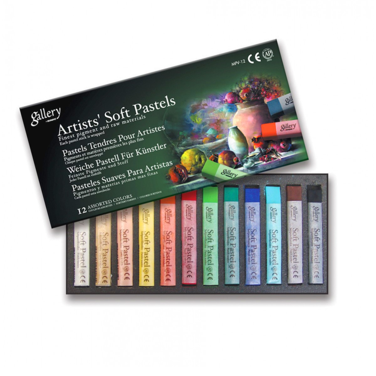Набор пастели мягкой квадратной в картонной коробке "Ассорти" GALLERY Artists' Soft "Assorted", 12 цветов.