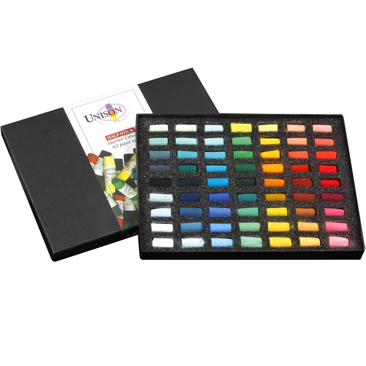 Cтартовый набор от Unison Colour (Великобритания) из 63 мелков пастели половинного размера. Этот набор идеально подходит для тех, кто только начинает рисовать пастелью, или для тех, кому нужно добавлнение популярных оттенков к более полному набору. Мягкая пастель Unison проста в использовании, легко растушевывается, имеет гладкую маслянистую текстуру и растворяется в воде. Эти интенсивно пигментированные мелки обладают превосходной светостойкостью. Unison это - высококачественная художественная пастель, изготовленная вручную, с использованием традиционных пигментов.