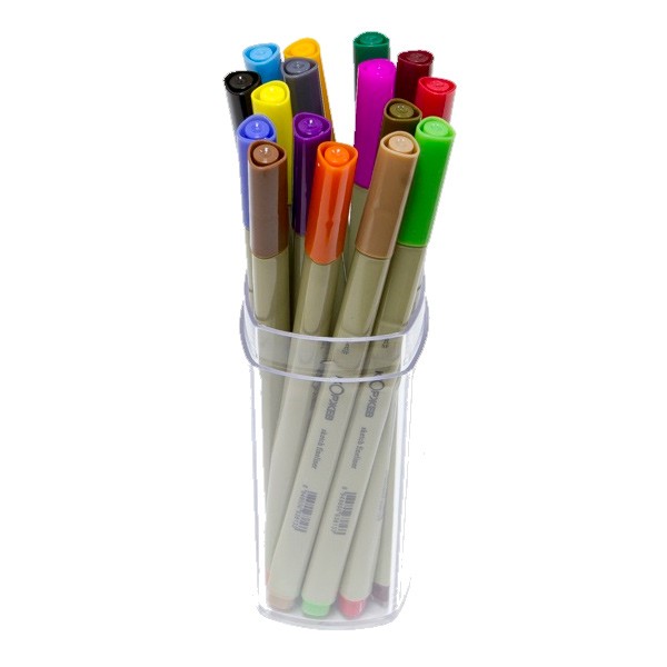 Набор линеров "Set 01" состоит из 16 цветов (см. ниже таблицу "Цвета набора"). Набор упакован в пластиковый прозрачный пенал круглого сечения.