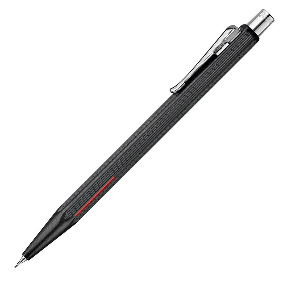 Коллекция Caran d’Ache Ecridor Racing в своём дизайне тонко переосмысливает коды автомобильной иконографии. Шестигранный корпус механического карандаша Ecridor Racing выполнен из латуни, сверху нанесено черное хромовое покрытие с песочной отделкой для матового эффекта. Гильоширование машинной резки, сделанное на корпусе, напоминает решетки радиатора гоночных автомобилей. Красный лак, нанесенный вручную по двум ребрам, напоминает свечение стоп-сигналов. Упругий зажим и кнопка подачи грифеля (с логотипом Caran d’Ache, выгравированным лазером) имеют палладиевое покрытие. Под колпачком кнопки скрываются ластик и контейнер с запасными грифелями 0,7 мм. Длина карандаша - 131мм, диаметр - 8 мм. Этот пишущий инструмент, в современном, но утонченном стиле, станет идеальным компаньоном для мужчин с характером.