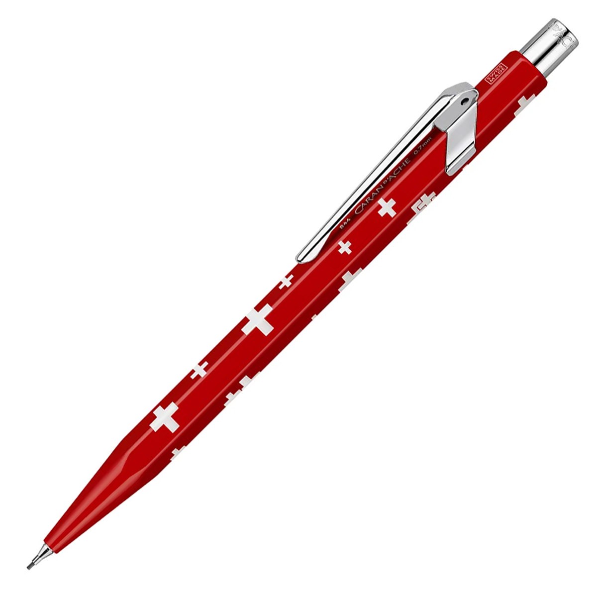 Легендарный дизайн ручки Caran d’Ache 849 теперь доступен в виде привлекательного и удобного механического карандаша. Этот легкий инструмент отличается высокой прочностью и обеспечивает оптимальный комфорт при использовании. Шестиугольный корпус сделан из алюминия и окрашен в цвета швейцарского флага. Корпус украшают эффектный гибкий зажим и кнопка из никелированного металла. Под колпачком кнопки скрываются ластик и контейнер с запасными грифелями 0,7 мм. Карандаш станет идеальным помощником для ежедневных заметок, для создания эскизов, или для точных технических рисунков и чертежей.