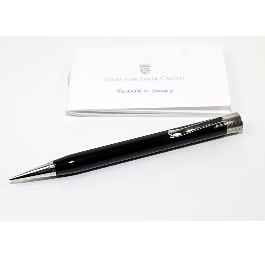Карандаш механический "Intuition Black" немецкой марки "Graf von Faber-Castell" объединяет в себе яркий блеск гладкого черного корпуса и прохладную элегантность платиновой поверхности декоративных деталей. Небольшое углубление на корпусе в области захвата не только говорит о кропотливости работы, проделанной мастерами, но и обеспечивает максимальный комфорт во время письма. Корпус сделан из драгоценной смолы черного цвета, многократно нанесенной вручную слой за слоем. Поверхность корпуса отполирована до блеска. Кроме того, карандаш украшают покрытые платиной передние и торцевые элементы и тонкие гравировки. Механический карандаш оснащен прочным грифелем толщиной 0,7 мм, отсеком для хранения сменных грифелей, а также сменным ластиком белого цвета под торцевым колпачком. Тугой зажим на колпачке имеет пружинную систему.