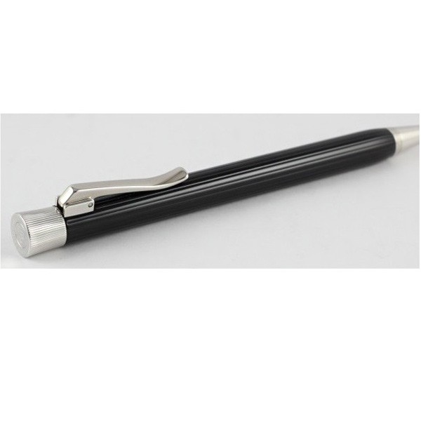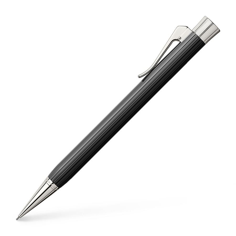 Карандаш механический "Intuition Fluted Black" немецкой марки "Graf von Faber-Castell" объединяет в себе матовый блеск черного ребристого корпуса и прохладную элегантность платиновой поверхности декоративных деталей. Небольшое углубление на корпусе в области захвата не только говорит о кропотливости работы, проделанной мастерами, но и обеспечивает максимальный комфорт во время письма. Корпус сделан из драгоценной смолы черного цвета, многократно нанесенной вручную слой за слоем. На поверхность корпуса нанесены продольные бороздки. Кроме того, карандаш украшают покрытые платиной передние и торцевые элементы и тонкие гравировки. Механический карандаш оснащен прочным грифелем толщиной 0,7 мм, отсеком для хранения сменных грифелей, а также сменным ластиком белого цвета под торцевым колпачком. Тугой зажим на колпачке имеет пружинную систему.