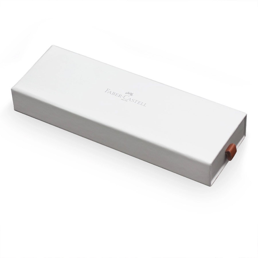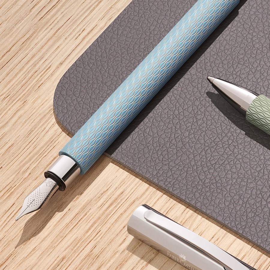 Перьевая ручка небесно-голубого цвета "Ambition OpArt Sky Blue" немецкой марки "Faber-Castell" выполнена из драгоценной смолы, декорированной в технике "гильош" ("guilloche"), используемой ювелирами при обработке драгоценных металлов. Помимо тонкой гравировки ручку украшают хромированные передние и торцевые элементы, и гравированный логотип "Faber-Castell" на колпачке. Для заправки предусмотрена возможность использования картриджей или конвертерной системы. Перо сделано из высококачественной нержавеющей стали. Колпачок - съёмный. Тугой зажим на колпачке имеет пружинную систему. Ручка упакована в белую подарочную коробку.