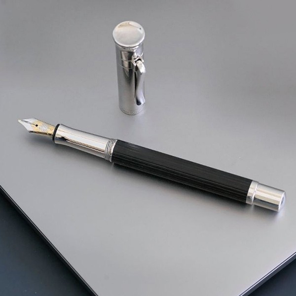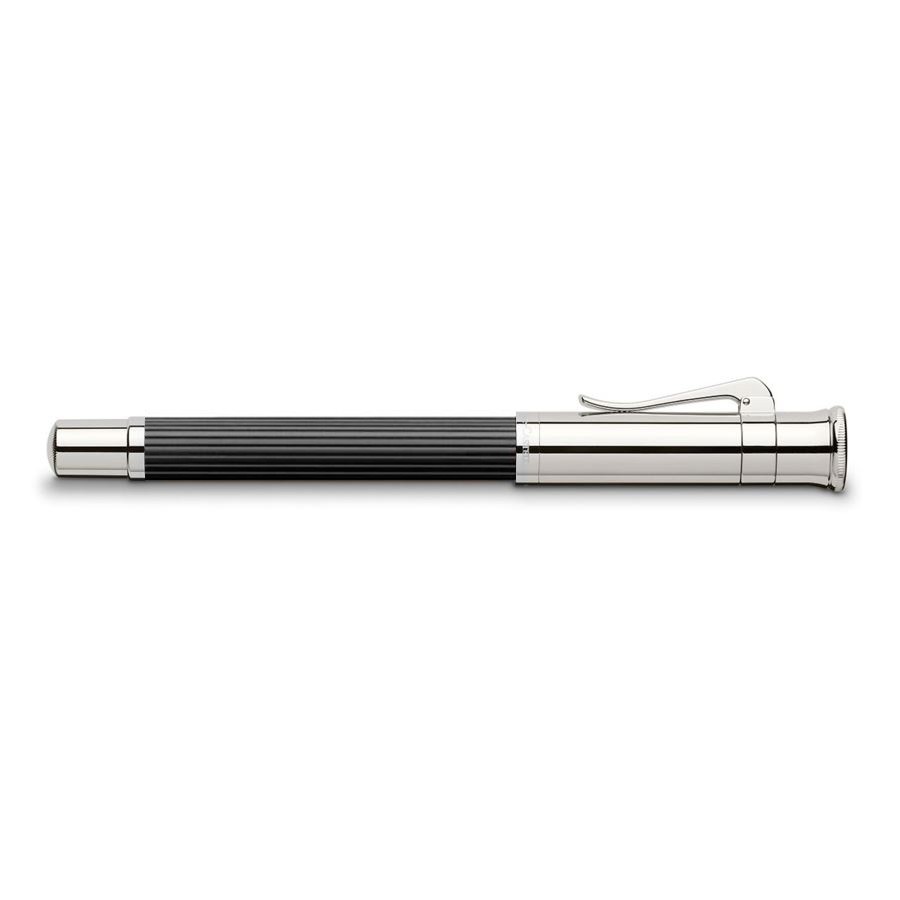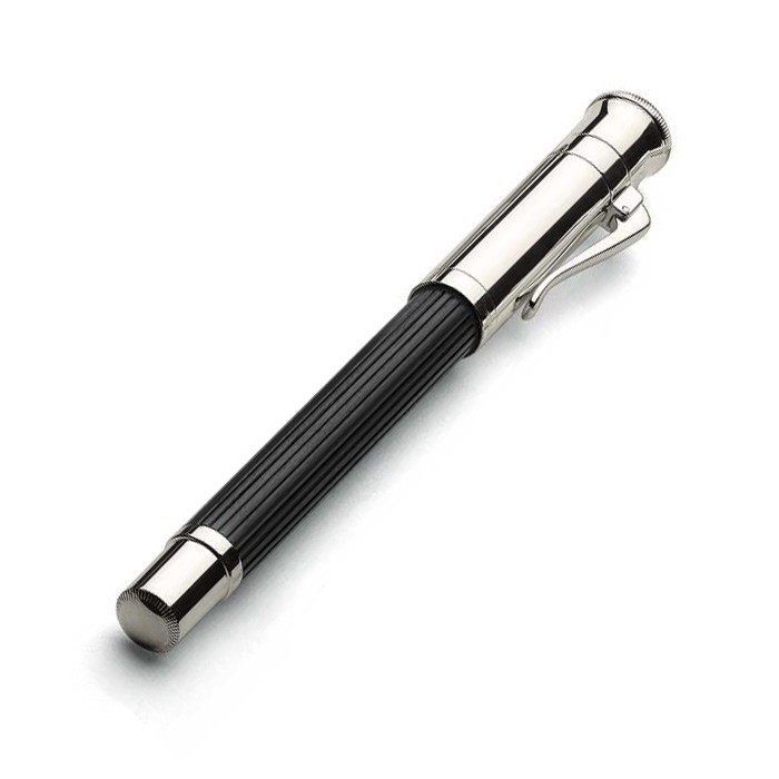 Перьевая ручка "Classic Ebony" немецкой марки "Graf von Faber-Castell" объединяет в себе естественное и теплое обаяние древесины с прохладной элегантной платиновой поверхностью декоративных деталей. Корпус сделан из драгоценной эбеновой древесины, добываемой в тропических лесах Африки и Азии. Эта древесина - чрезвычайно плотная и тонет в воде. Из нее делают дорогую мебель, детали музыкальных инструментов и высококлассные декоративные вещи. На деревянную поверхность ручки нанесены продольные бороздки. Кроме того ручку украшают покрытые платиной передние и торцевые элементы и тонкая гравированная печать "Handmade in Germany" ("Сделано вручную в Германии"). Для заправки предусмотрена возможность использования картриджей или конвертерной системы. Перо сделано из двухцветного золота (18 карат) с кончиком из твердого сплава. Колпачок - завинчивающийся. Тугой зажим на колпачке имеет пружинную систему.