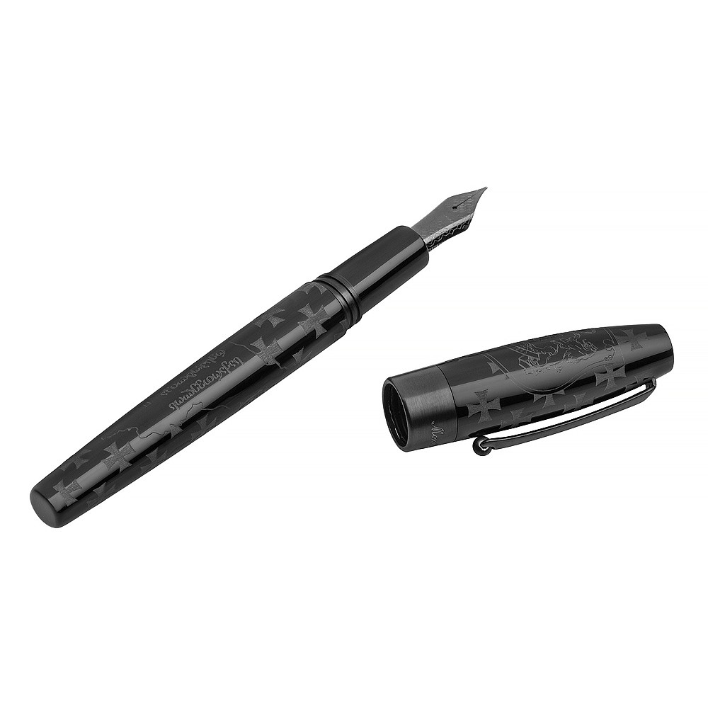 Ручка перьевая "Fortuna Грузия" с отделкой черного цвета от итальянской компании "Montegrappa" входит в серию, посвященную культуре и традициям республики Грузия. Лаконичная форма и игра строгих черных тонов придают ручке благородный и мужественный облик. Ее корпус и колпачок выполнены из акриловой смолы и украшены гравировкой: герб Грузии, очертания границ и кресты с национального флага. Отделка - стальная с темным покрытием из рутения. Перо также сделано из высококачественной стали с рутениевым покрытием. На нём выгравирован тонкий фирменный орнамент "Montegrappa". Колпачок - закручивающийся. Заправлять ручку чернилами можно с помощью конвертера или посредством картриджей. Ручка станет отличным подарком для любого представителя грузинского народа и для всех, кому дорог этот прекрасный край.