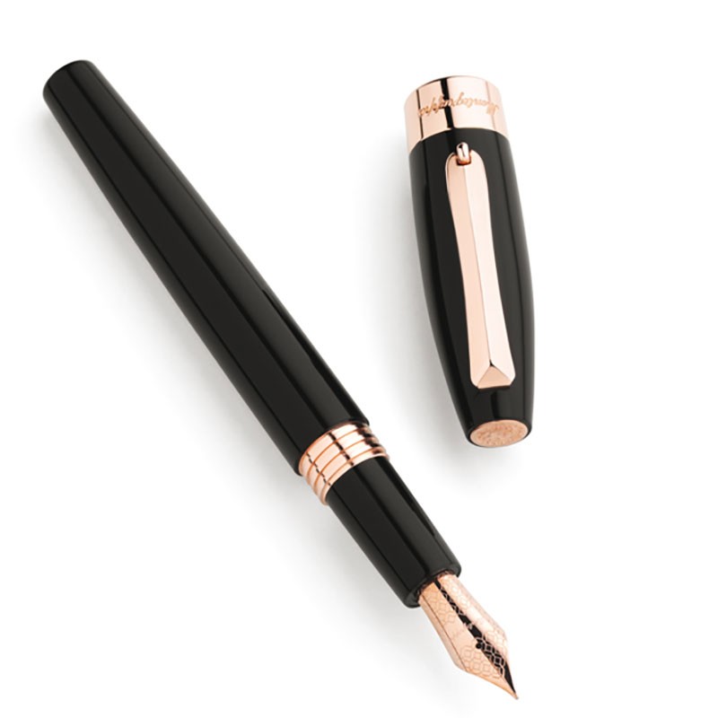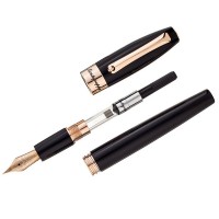 Ручка перьевая "Fortuna" черного цвета от итальянской компании "Montegrappa" это - красивая классическая ручка. Лаконичная форма и игра строгих тонов придают ручке благородный и мужественный облик. Ее корпус и колпачок выполнены из акриловой смолы. Отделка - стальная с позолотой. Перо также сделано из высококачественной стали с покрытием из золота. На нём выгравирован тонкий фирменный орнамент "Montegrappa". Колпачок - закручивающийся. Заправлять ручку чернилами можно с помощью конвертера или посредством картриджей. Ручка станет отличным подарком для любого человека, который серьезно и вдумчиво относится к своему делу.