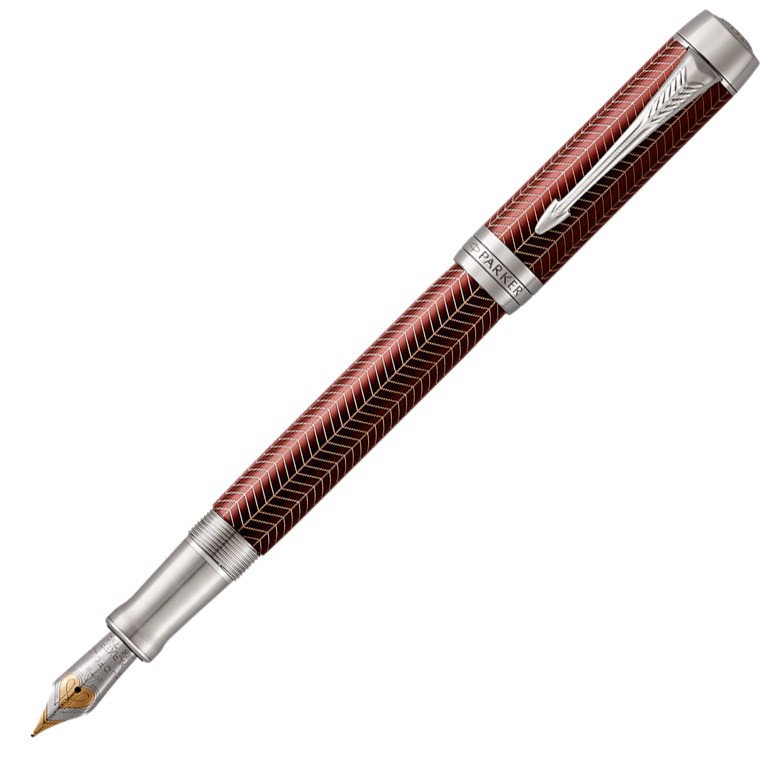 Ручка перьевая Parker Duofold F307 Prestige Centennial Burgundy Chevron CT, перо F золото 18K с родиевым покрытием